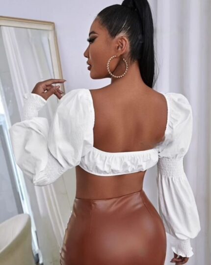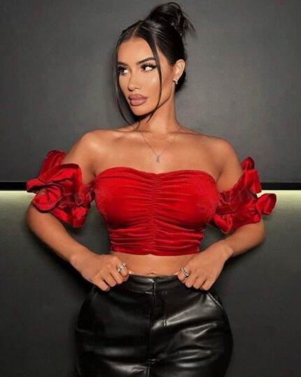 Haut court à volants à manches évasées dénudées
