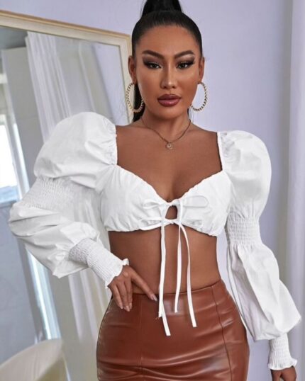 Hauts crop avec manches longues et nœud devant